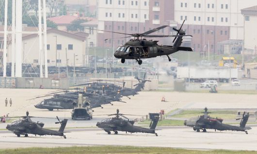 경기도 평택시의 주한미군 캠프 험프리스 기지에서 블랙호크 헬기가 이동하고 있다. 연합뉴스 |