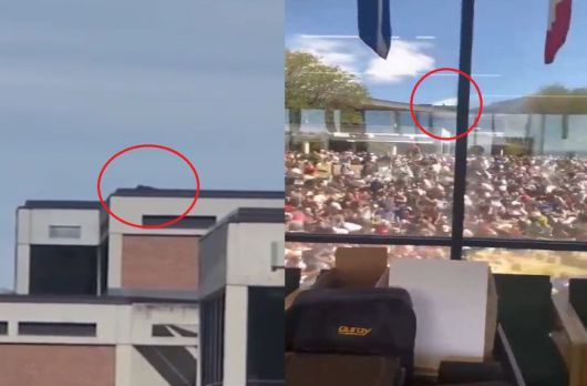 한 영상에서는 검은 형체가 옥상에 엎드려 있는 모습이 포착됐으며 이를 본 참석자가 그를 가리키며 "누군가 지붕에 있다"고 말하는 장면이 담겨 있다.
