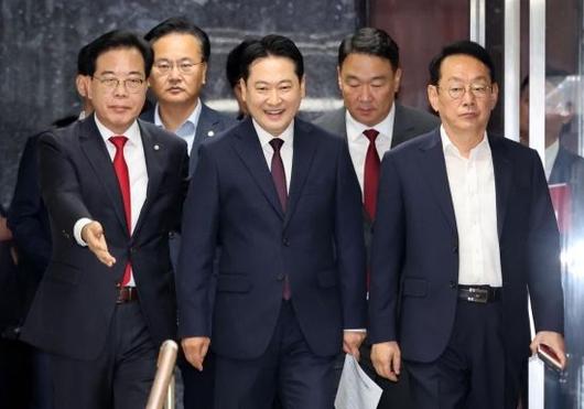 장동혁 국민의힘 대표와 송언석 원내대표 등 지도부가 12일 국회에서 열린 이재명 정부 100일 국정 파탄 실정 토론회에 참석하고 있다. <ⓒ투자가를 위한 경제콘텐츠 플랫폼, 아시아경제(www.asiae.co.kr) 무단전재 배포금지>