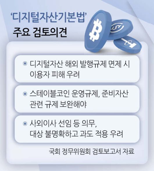 해당 법안은 국내에서 디지털자산을 발행하려는 발행인에 신고서 제출을 의무화했지만, 외국에서 발행하는 디지털자산에 대해서는 예외를 뒀다. 보고서는 “국내 발행인과 해외 발행인 간 규제 형평성을 고려한 논의가 필요하다”고 밝혔다. 이용자 보호 사각지대가 생길 수 있다는 우려도 나왔다. 금융위 지적을 인용해 “해외 발행 시 발행규제를 전부 면제하는 것은 이용자 피해 우려가 있어 신중해야 한다”고 제시했다.