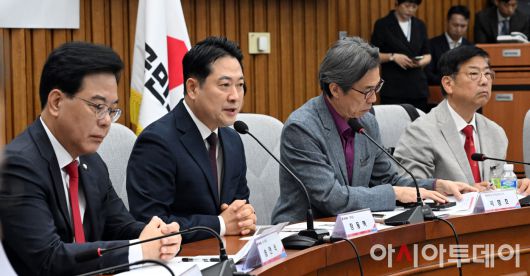 아시아투데이 송의주 기자 = 장동혁 국민의힘 대표(왼쪽에서 두번째)가 12일 국회에서 열린 '이재명 정부 100일 국정 파탄 실정 토론회'에서 발언을 하고 있다. ⓒ "젊은 파워, 모바일 넘버원 아시아투데이"