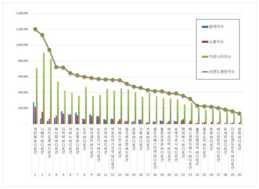 브랜드평판지수는 소비자들의 온라인 습관이 브랜드 소비에 큰 영향을 끼친다는 점에 착안해 브랜드 빅데이터 분석을 통해 만들어진 지표다. 바디로션 브랜드평판은 참여지수, 소통지수, 커뮤니티지수로 분석했다.