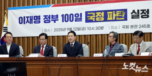 국민의힘 장동혁 대표가 12일 서울 여의도 국회에서 열린 '이재명 정부 100일 국정파탄 실정 토론회'에 발언을 하고 있다.