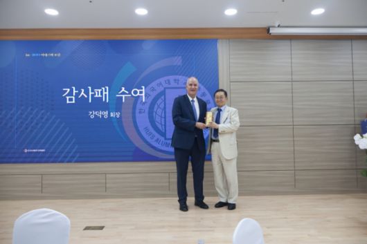 강연 후 유나이티드문화재단 강덕영 이사장은 하르파즈 대사에게 감사패를 전달하며 "이번 포럼이 단순한 지식 전달을 넘어 새로운 도전과 협력의 기회를 모색하는 장이 되길 바란다"고 말했다.