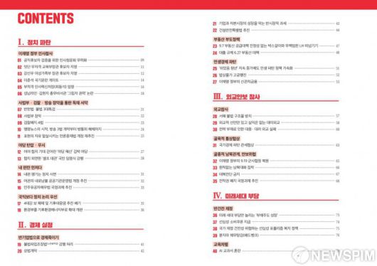 국민의힘이 12일 발간한 이재명 정부 100일 국정 파탄 실정 사례집 목차. |