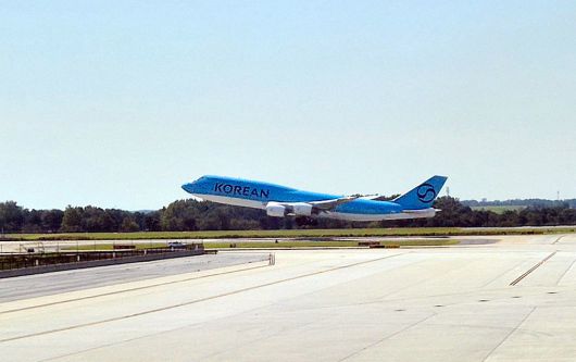 미국 이민 당국에 구금됐다가 풀려난 한국인 근로자들이 탑승한 대한항공 전세기가 지난 11일(현지시간) 미국 조지아주 하츠필드-잭슨 애틀랜타 국제공항에서 이륙하고 있다.[사진=연합뉴스] |