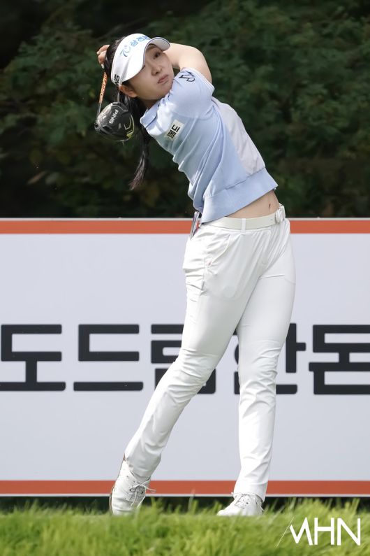 (MHN 포천, 박태성 기자) 12일 경기도 포천시에 위치한 포천 아도니스 컨트리클럽(파72 예선 6,598야드ㅣ본선 6,499야드)에서 'OK저축은행 읏맨 오픈(총상금 10억 원ㅣ우승상금 1억8천만 원) 1라운드 경기가 열렸다. 유현조(삼천리)가 14번홀 경기를 펼치고 있다. <저작권자 Copyright ⓒ MHN / 엠에이치앤 무단전재 및 재배포 금지>