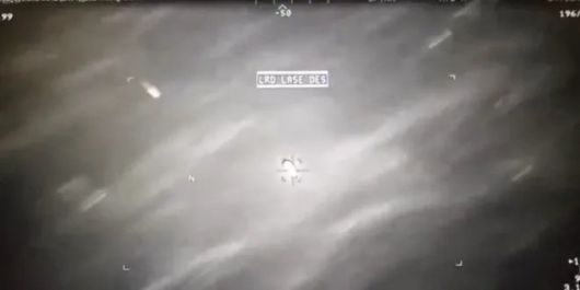 지난해 10월 예멘 해안에서 미국 MQ-9 드론이 헬파이어 미사일(왼쪽)을 미확인비행물체(가운데)에 발사하는 모습. 에릭 버리슨 미국 하원의원 엑스@RepEricBurlison 캡처