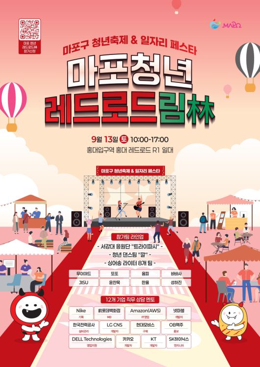 13일 자치구에 따르면 마포구는 이날 오전 10시부터 레드로드 R1에서 ‘마포 청년 레드로드림(林)’을 개최한다. 축제는 ‘청년축제’와 ‘일자리페스타’가 결합돼 청년의 문화 참여를 증진하고 지역 내 청년 네트워크를 강화하기 위해 마련됐다.