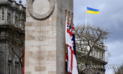 영국 화이트홀에 지난 2022년 내걸린 우크라이나 깃발 |