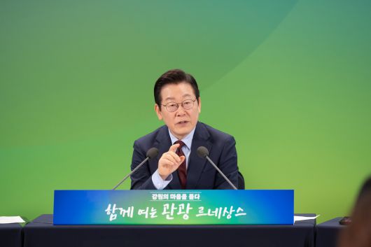 이재명 대통령이 12일 강원 춘천시 강원창작개발센터에서 열린 '강원의 마음을 듣다' 타운홀 미팅에서 발언하고 있다. /대통령실 |