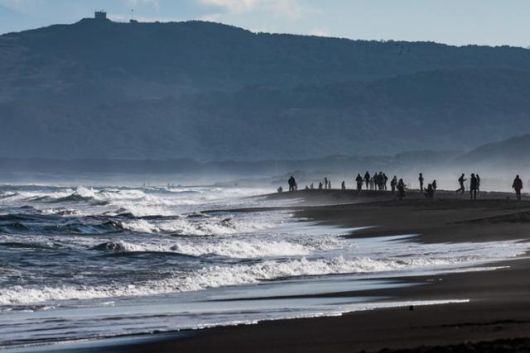 러시아 캄차카반도 해변에 지난달 31일 사람들이 모여 있다. 캄차카=타스통신 연합뉴스 |