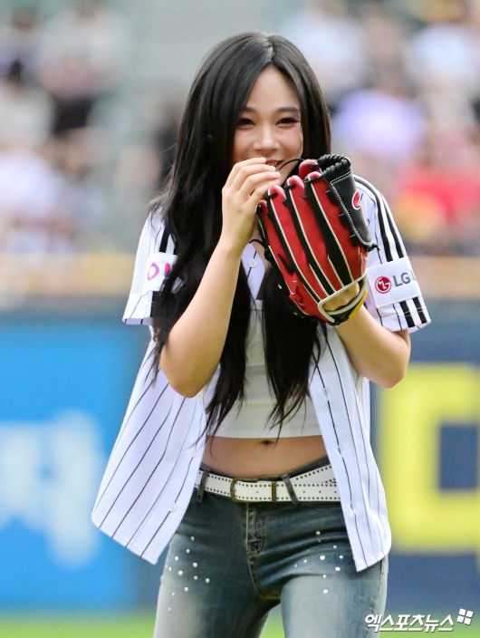 (엑스포츠뉴스 잠실, 김한준 기자) 13일 오후 서울 송파구 잠실야구장에서 열린 '2025 신한 SOL Bank KBO리그' KIA 타이거즈와 LG 트윈스의 경기, 경기 전 가수 겸 배우 비비가 시구에 임하고 있다.김한준 기자 kowel@xportsnews.com