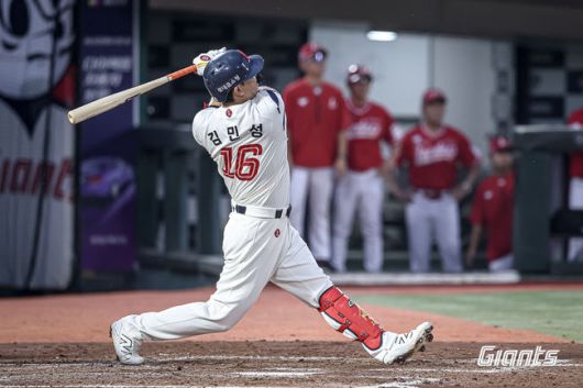 3회에는 선두타자 김민성이 좌중간 담장 상단을 때리는 2루타로 포문을 열었다. 나승엽의 우익수 뜬공으로 이어진 1사 3루 기회에서 손호영이 우전 적시타를 뽑아내 5-5 동점에 성공했다.