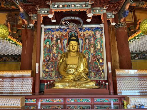 비암사 극락보전에 봉안된 소조아미타여래좌상 |