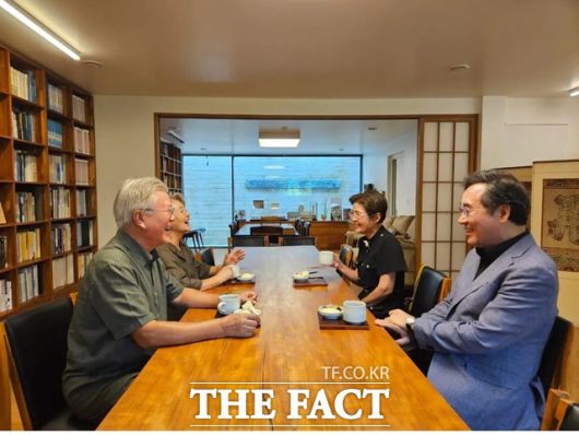 이 전 총리는 전날 자신의 페이스북을 통해 문재인 전 대통령 부부와 만나 차를 마시는 사진을 공개했다. 이 전 총리는 "추석 인사를 겸해 평산으로 문재인 대통령 내외분을 아내와 함께 찾아뵈었다"며 "근황과 지난 일 그리고 막걸리 얘기 등 여러 말씀을 나눴다. 내외분께서는 매우 건강하게 지내시며 여기저기 의미 있는 곳에 다니고 계셨다"고 적었다.