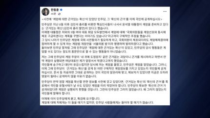 국민의힘 한동훈 전 대표는 더불어민주당은 지난해 8월부터 윤석열 전 대통령이 계엄을 준비하고 있다는 '근거 있는 확신'이 있다고 했다면서, 근거를 공개하라고 요구했습니다.