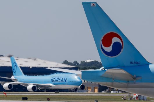 10일(현지시간) 미국 조지아주 애틀랜타 소재 하츠필드 잭슨 애틀랜타 국제공항에서 대한항공 비행기가 보인다. 애틀랜타(미국)/EPA연합뉴스 |