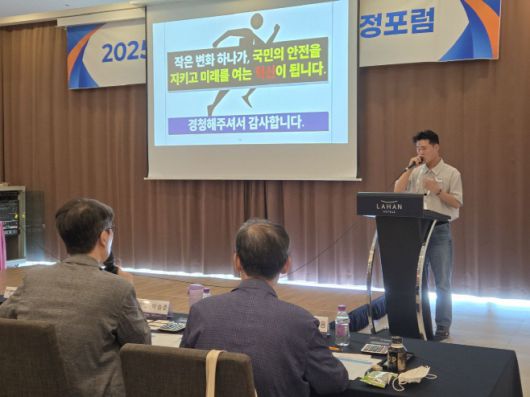 양정훈 주무관이 포항 라한호텔에서 열린 경상북도 주관 '2025년 지방재정 우수사례 발표대회'에서 예산절감 분야에 대해 발표하고 있다/문경시 |