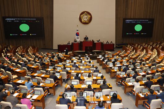 11일 서울 여의도 국회 본회의에서 '김건희와 명태균·건진법사 관련 국정농단 및 불법 선거 개입 사건 등 진상규명을 위한 특별검사 임명 등에 관한 법률 일부개정법률안에 대한 수정안'이 여당 주도로 통과되고 있다. 고이란 기자 photoeran@ |