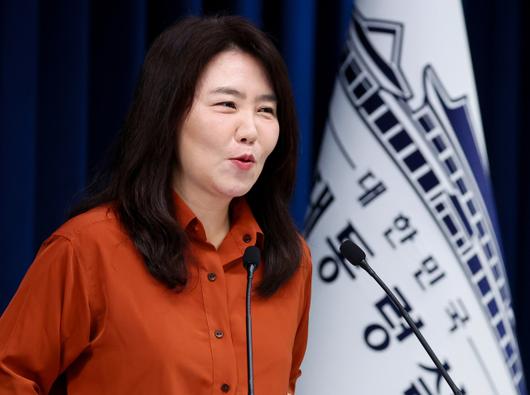 ▲강유정 대통령실 대변인이 14일 용산 대통령실에서 지난 12일 강원도 춘천에서 진행된 강원 타운홀미팅 관련 브리핑을 하고 있다. ⓒ연합뉴스 |