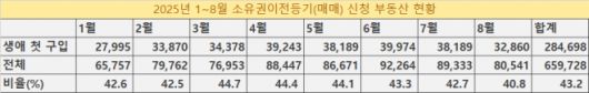 1~8월 소유권이전등기(매매) 신청 부동산 현황. 법원 등기정보 광장 제공 |
