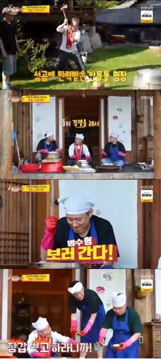 안유성의 1호 제자는 장작 패기에 진땀을 흘렸다. 장작 패기 요령을 아는 안유성은 바로 장작을 두 동강 냈다.