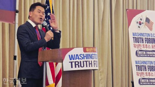 이날 행사를 주최한 단체는 박근혜 전 대통령 탄핵이 부당하다고 분개하며 2017년 현 대표 김은구씨가 서울대에 설립한 복음주의 개신교 기반 우파 단체 ‘트루스포럼’의 미국 지부다. 주로 고령의 재미 동포 보수 개신교 교인 280여 명이 자리를 채웠다.