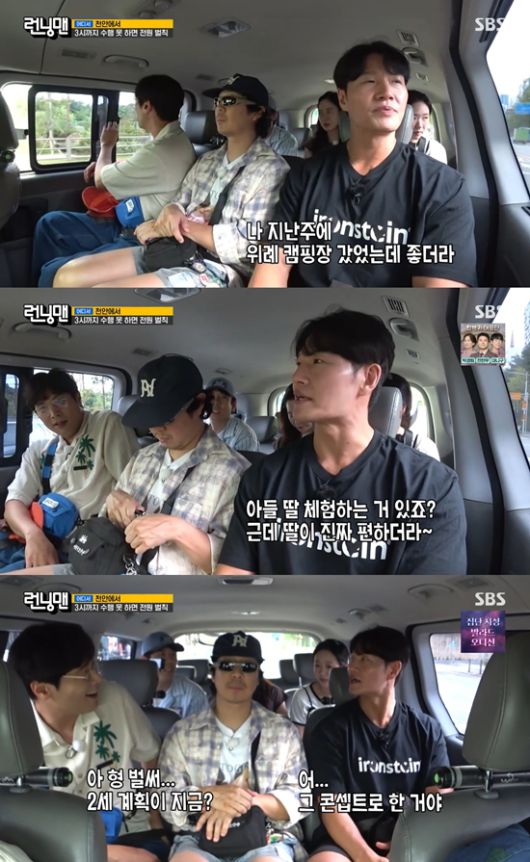 차에 탑승한 멤버들은 수서역으로 떠나며 이야기를 나누는 시간을 가졌다. 위례를 지나가던 도중, 김종국은 "나 지난주에 위례 캠핑장 갔는데 좋더라"라며 근황을 언급했다. 유재석은 "종국아, 너 요즘 안 가던 데를 막 간다"고 예리한 질문을 건넸고, 지석진은 "제수씨랑 갔냐"고 한 술 더 뜨며 궁금증을 증폭시켰다.