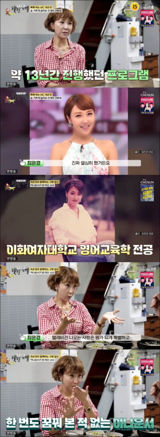 14일 방송된 TV조선 '식객 허영만의 백반기행'에서는 아나운서 출신 방송인 최은경이 출연했다.