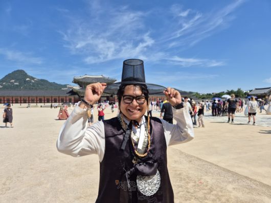 14일 서울 종로구 경복궁. 검은색 한복에 갓을 쓴 멕시코 관광객 파블로(29)가 갓끈 구슬을 만지며 이렇게 말했다. 연신 사진을 찍던 그는 “넷플릭스 애니메이션 영화 ‘케이팝 데몬 헌터스’(케데헌)에서 본 장면을 따라 하고 싶었다”며 “경복궁, 한복, 갓은 요즘 한국 여행에서 ‘필수 코스’”라고 강조했다.