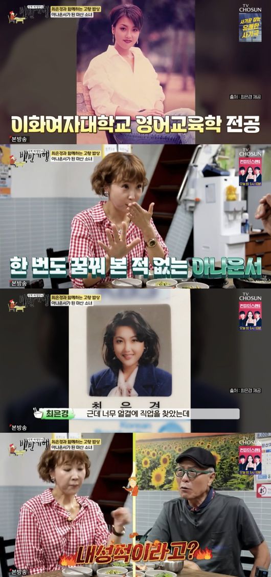 허영만은 “그럼 어렸을 때부터 꿈이 아나운서가 아니였냐”라고 물었고, 최은경은 “텔레비전에 나오는 사람은 뭔가 되게 특별하고 인형같이 생기고 그런 사람들만 하는 건 줄 알았다. 그쪽은 평생 꿈꿔본 적 없다”라고 답했다.