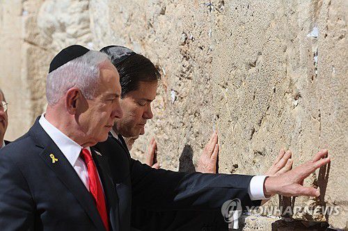AP, dpa, 로이터 통신에 따르면 네타냐후 총리는 이날 루비오 장관, 마이크 허커비 주이스라엘 미국대사와 함께 '통곡의 벽'으로 불리는 동예루살렘 구시가지의 서쪽 벽에서 기도한 뒤 이같이 말했다.