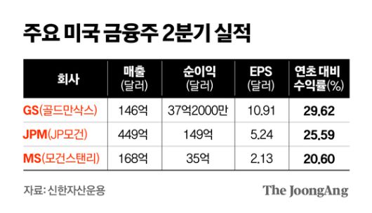 실적도 돋보이지만 자산운용사들이 공통으로 골드만삭스를 추천한 이유는 따로 있다. 주주가치 제고다. 골드만삭스는 4~6월 자사주 매입과 배당금 등에 총 39억6000만 달러(약 5조5200억원)를 썼고, 3분기 분기 배당금을 주당 3달러에서 4달러로 인상했다.