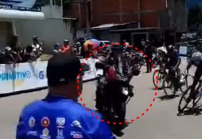 베네수엘라에서 열린 유명 자전거 대회에서 경찰 오토바이가 선수 무리를 덮쳐 선수들이 다치는 사고가 발생했다.
