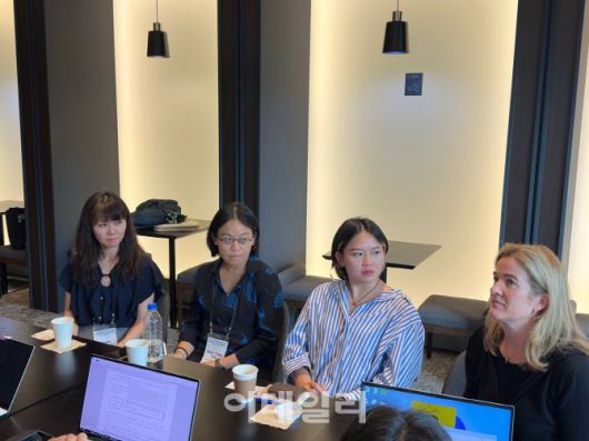 국외소재문화유산재단 ‘제4회 해외전문가 보존처리 교육 워크숍’에 참여한 보존처리 전문가 쿠스노키 쿄코(왼쪽부터, 대영박물관), 차이 신전(보스턴 미술관), 태미 홍(필라델피아 미술관), 제니퍼 페리(메트로폴리탄 미술관)이 지난 13일 서울 종로구 인사동 나인트리 호텔에서 인터뷰를 하고 있다. (사진=국외소재문화유산재단) |