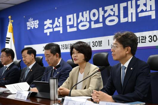 한정애 민주당 정책위의장은 이날 국회에서 열린 ‘추석 민생안정대책 당정협의회’가 끝난 뒤 “당은 추석을 계기로 민생 안정 대책 마련을 요청했고, 정부는 성수품 물가 안정, 민생 부담 경감, 지방 중심 내수 활성화, 국민 안전에 중점을 둔 대책을 마련했다”며 이같이 밝혔다.