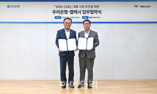[이데일리 김아름 기자] B2B 금융 AI 에이전트 기업 웹케시(053580)가 우리은행과 ‘WIN-CMS 제휴 사업’ 추진을 위한 업무협약을 체결했다고 15일 밝혔다.