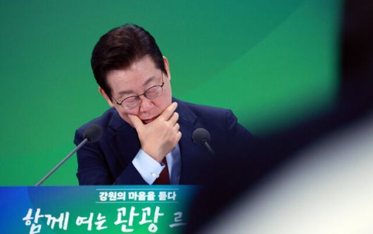 이재명 대통령이 12일 강원도 춘천시 강원창작개발센터에서 열린 지역 토론회 \'강원의 마음을 듣다\' 타운홀 미팅에서 자료를 보고 있다. 연합뉴스 |