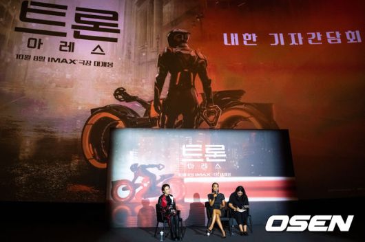 [OSEN=박준형 기자] 영화 ‘트론:아레스’ 내한 풋티지 시사 및 기자간담회가 15일 오후 서울 용산아이파크몰 내 용산 CGV에서 진행됐다.