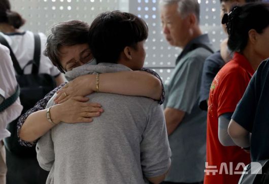 [인천공항=뉴시스] 황준선 기자 = 미국 이민당국에 의해 조지아주에 구금됐던 한국인 근로자들이 12일 인천국제공항 제2여객터미널을 통해 귀국한 뒤 주차장에서 가족과 만나고 있다. (공동취재) 2025.09.12. photo@newsis.com |