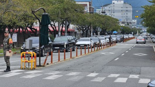 15일 오후 1시가 다가오자 경남 창원시 해군 진해기지사령부 제3 정문 입구 앞으로 차량들이 몰려 들었다. 차량 줄은 입구부터 남원로터리까지 약 100m 가량 이어졌다. 이날 사령부 내 해군사관학교에서 139기 해군 학사사관 후보생 입영식이 이뤄질 예정이기 때문이다.