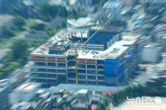 [서울=뉴시스] 권창회 기자 = 지난달 10일 서울 남산타워 전망대에서 바라본 한 건설현장 모습. 2025.09.15. kch0523@newsis.com |