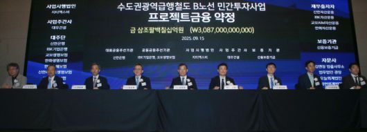 신한은행은 수도권광역급행철도(GTX) B노선 민간투자사업의 대표 금융주선기관으로 총 3조 870억 원 규모의 금융주선을 성공적으로 완료하고 15일 프로젝트금융 약정식을 개최했다고 밝혔다.