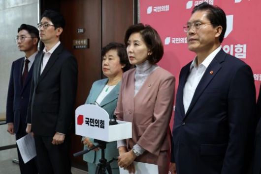 나경원 국민의힘 의원은 이날 국회에서 조배숙·송석준·주진우 의원 등 국민의힘 법사위원들과 기자회견을 열고 "(더불어민주당은) 조 대법원장 체제를 무너뜨리고 이 대통령 무죄 판결문을 직접 쓰겠다는 것"이라며 "국회 법사위원장과 거대여당 당대표, 대통령실까지 대법원장 사퇴를 압박하는 것은 헌법에 대한 정면 도전"이라고 말했다.