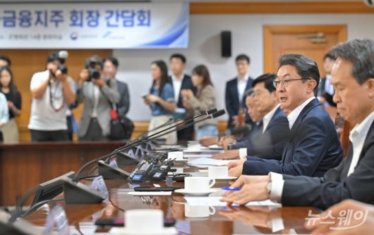 이억원 금융위원장이 15일 서울 중구 은행연합회에서 열린 '금융위원장-금융지주 회장 간담회'에서 모두발언 하고 있다. 사진=이수길 기자 Leo2004@newsway.co.kr |