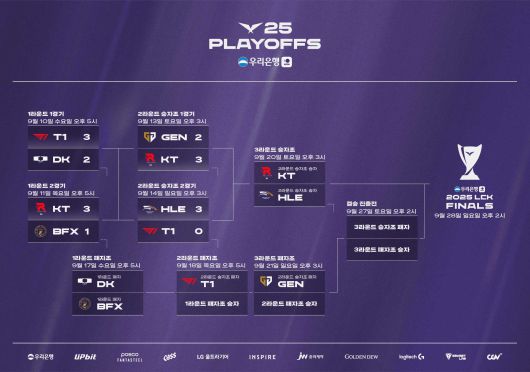 라이엇 게임즈가 개발 및 서비스하는 '리그 오브 레전드(LoL)'의 이스포츠 한국 프로 리그인 LCK를 주최하는 리그 오브 레전드 챔피언스 코리아는 10일(수)과 11일(목), 13일(토)과 14일(일) 서울 종로구 롤파크에 위치한 LCK 아레나에서 열린 2025 우리은행 LCK 플레이오프 1, 2라운드에서 kt 롤스터와 한화생명e스포츠가 각각 젠지와 T1이라는 강호를 물리치면서 승자조 결승(결승 직행전) 티켓과 LoL 월드 챔피언십 티켓을 단숨에 거머쥐었다고 밝혔다.