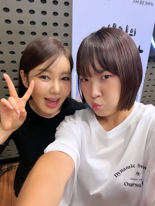 사진 속 송가인과 '가요광장' DJ 이은지는 함께 윙크를 하며 다정한 포즈를 취하고 있다. 이어 장난스러운 표정과 포즈로 친밀한 케미를 드러냈다.