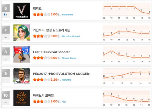 그 뒤를 이어 ‘가십하버: 합성 & 스토리 게임’이 7위를 유지했고, ‘라스트워: 서바이벌’은 3위까지 올랐다가 다시 8위로 주저앉으며 기복을 보였다. 여기에 코나미의 ‘PES2017 -프로 에볼루션 사커-’가 무려 출시 8년 만에 9위에 오르는 의외의 반등을 기록하며 화제를 모았다. 특별한 계기는 알 수 없지만, 오랜 명작의 힘이 다시 주목받는 기묘한 순간이었다는 평가다.