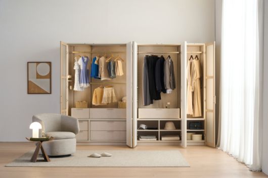 엘레브 장롱은 신개념 높이 조절 모듈형 붙박이장으로, 특허 출원된 ‘플렉스레일(Flex Rail)’ 시스템을 통해 장롱 내부에 설치된 채널 형태의 레일에서 4㎝ 단위로 높낮이를 자유롭게 조절할 수 있다. 이를 통해 라이프스타일 변화, 수납 품목, 자녀의 성장단계 등 다양한 상황에 맞춰 내부 구성을 손쉽게 조절할 수 있고, 1.5m와 2m 와이드 바디에 폴딩 도어를 적용하면 의류와 수납 공간을 한 눈에 확인할 수 있는 개방감을 제공한다.